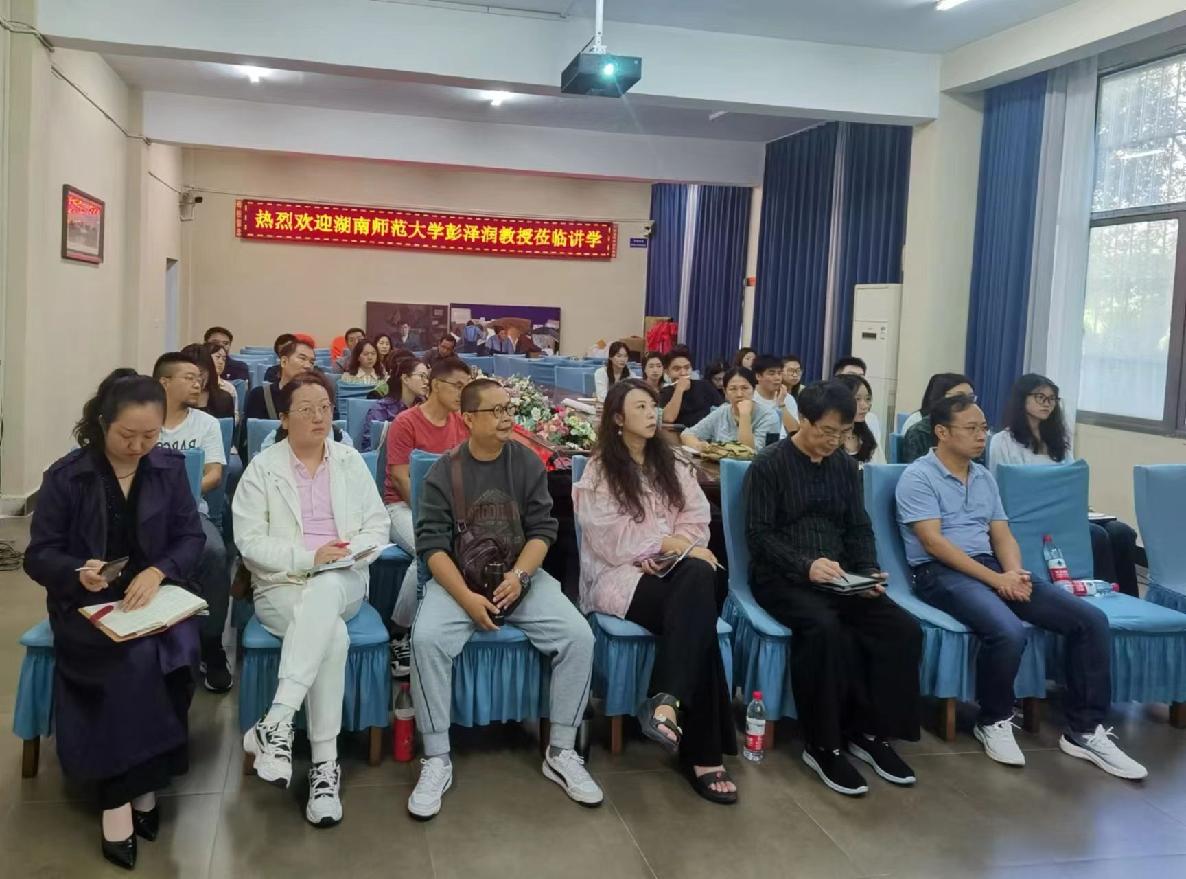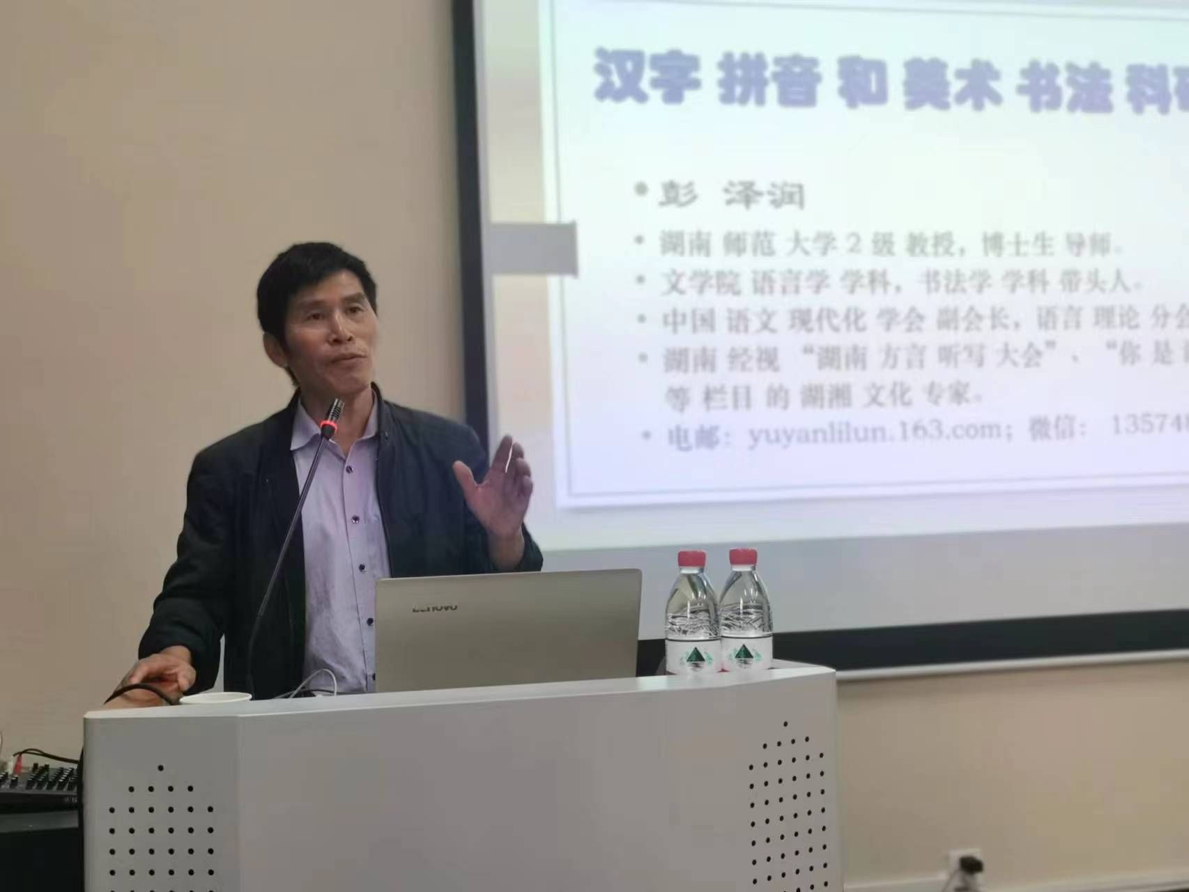 2023年10月18日下午,湖南师范大学博导彭泽润教授应邀来victor1946作了题为《汉字拼音和美术书法科研课题创新设计》的报告。学院教授、博士、中青年科研骨干、教研室主任、2023级全体硕士研究生等人参加会议。会议由院长叶经文主持。