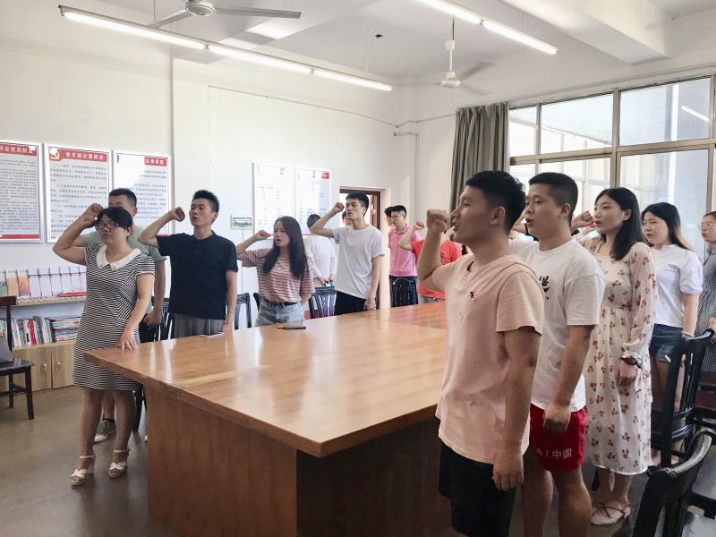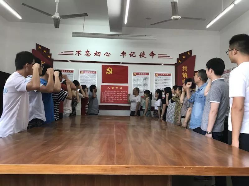活动中,在领颂人员的带领下各支部党员重温了入党誓词,大家面对鲜红的党旗郑重宣誓:“我志愿加入中国共产党,拥护党的纲领,遵守党的章程……”一句句誓词雄壮豪迈,一声声誓言铿锵有力。80个字的铮铮誓言让大家热血沸腾,进一步增进了对党的情感,进一步接受了党性教育,思想得到进一步升华。