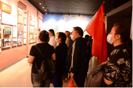 在党旗的引领下,同志们来到沙洲村陈列馆,观看了湘南特别是宜郴地区土地革命斗争时期历史、文物和汝城革命先烈英雄事迹展览。