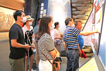 党员同志沿着展厅的指示牌,在讲解员的带领下,在一幅幅珍贵的历史图片上停留、注视,在一盘盘模拟的微缩战争场景旁指点、感慨。因为展厅人数太多,我们的党总支书记魏长龙还利用自己的专业知识为大家充当起临时讲解员。