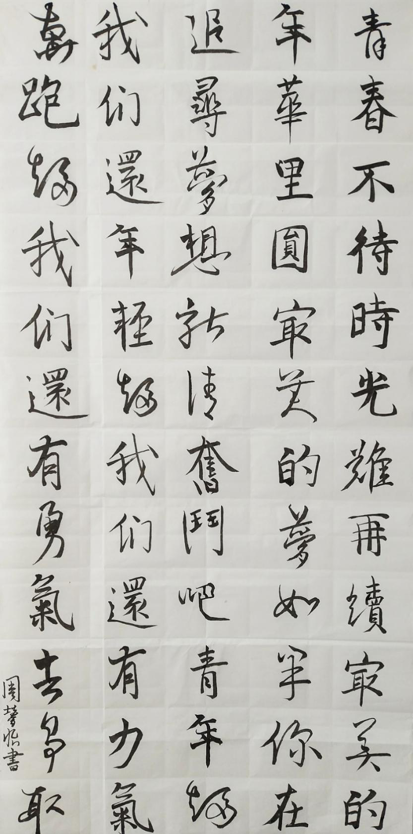 参加本次大赛的书法作品,有的圆润大气,有的规矩铿锵,它们各具美感,赏心悦目,虽是黑白纸墨,展现的却是千姿百态。对于一个民族来说,文字就是他的灵魂,希望在以后的日子里,美院学子可以再接再厉,传承书法文化!