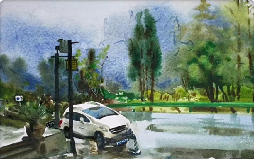 雨中作画也是一种别样的乐趣,