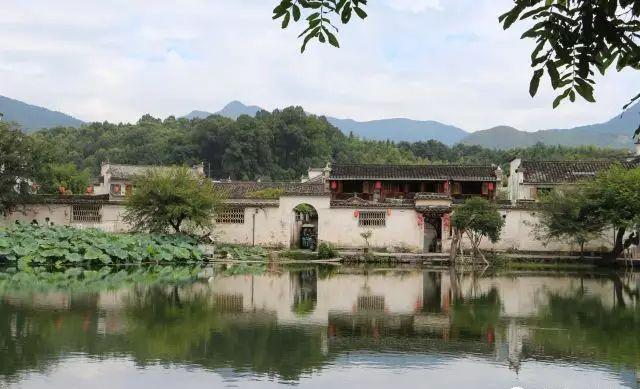 古香碧树掩映着白墙灰瓦的徽派建筑,