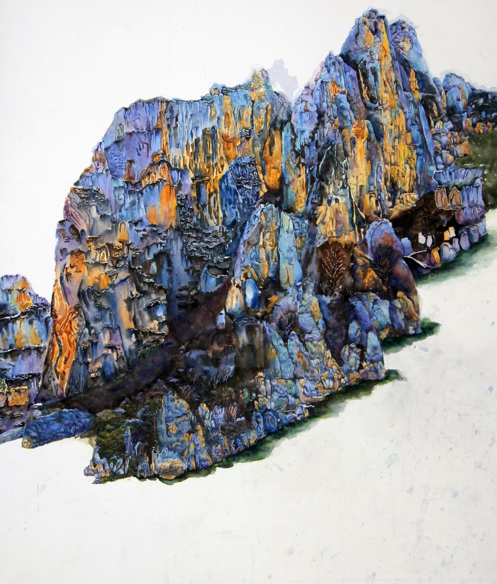 向诗洁毕业创作《奇石》,来源于写生课素材的整理,能够熟练合理运用积墨、泼墨、积色等技法来表现画面,在形式感的处理上也有一定的认识和新意。