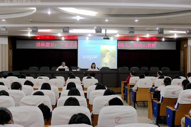 6月13日晚,著名书法家何铁山先生回到阔别多年的母校,并在学院学术交流中心六楼报告厅作了一场题为《老子天下第一》的专题讲座。副院长李玲玲主持讲座,衡阳市社科联、市教育局相关负责人出席了本次讲座,美术系、中文系等近200名师生聆听了何先生的精彩讲座。