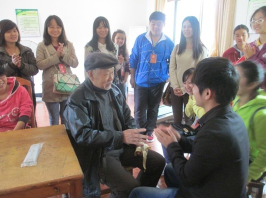 见到老人们,大家好像见到了自己的爷爷奶奶,将手里的水果一一发给老人们,主动和老人们谈心、拉家常、唱国歌,还为老人们修剪指甲,询问老人们的身体情况。随后,将老人们一一聚齐,开始为老人们表演歌曲,现场气氛热闹非凡,温馨感人,欢笑声、歌声、交谈声交汇在整个敬老院,老人们的脸上都布满了笑容。