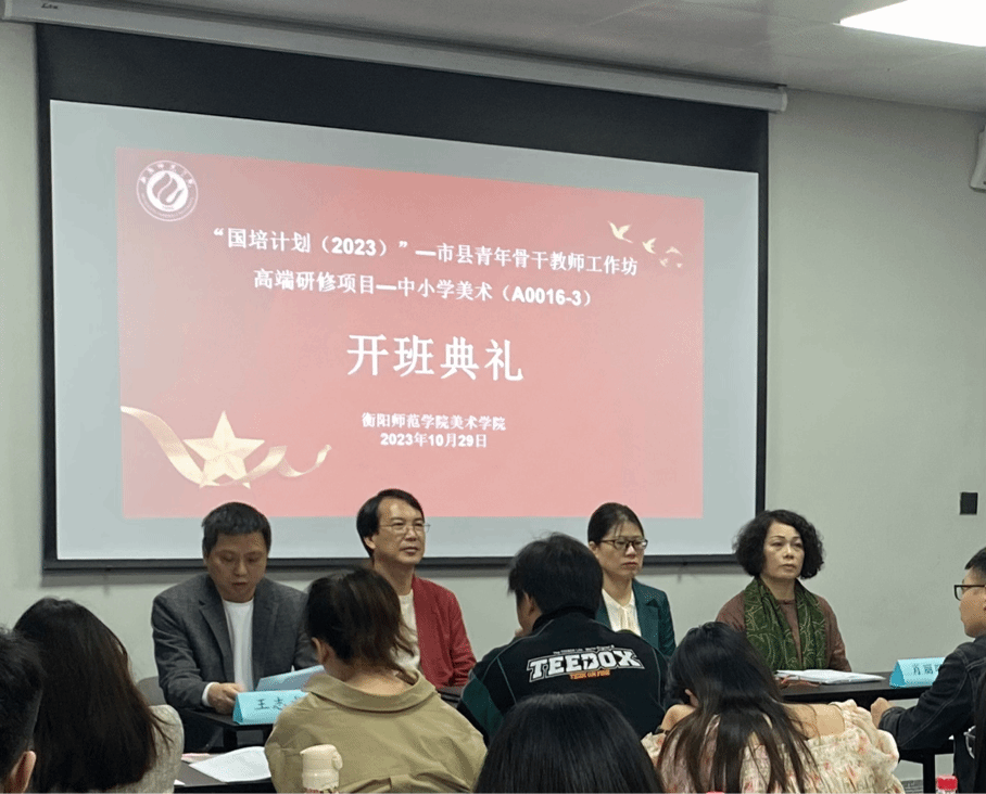 唐斯萍代表承办单位衡阳师院在开班仪式上致辞。她说,作为百年师范,伟德bv1946一直重视高等教育与基础教育的对接,重视教师培训工作并对此培训提出三点建议:一是牢记教育的根本任务为立德树人;二是加强中小学美术教育的创新实践;三是提高自身内驱力,期待本项目在培养培训一体化方面做出特色,做出高水平。