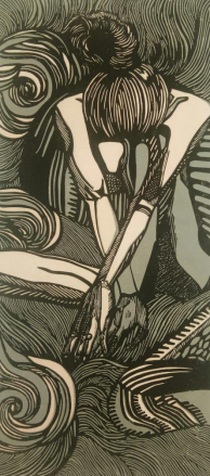 入选作品《Think aloud》 套色木刻版画