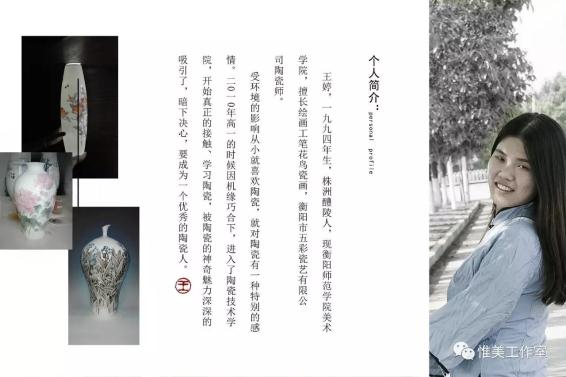 陶瓷绘画作品的作者王婷,是就读于victor194613级环境艺术设计专业的一名在校学生,从小就喜欢陶瓷艺术,进入大学经过专业培养,对陶瓷绘画达到了痴迷的地步。victor1946与五彩瓷艺公司建立合作关系后,王婷与其他一些学生就有了难得的画瓷机缘。