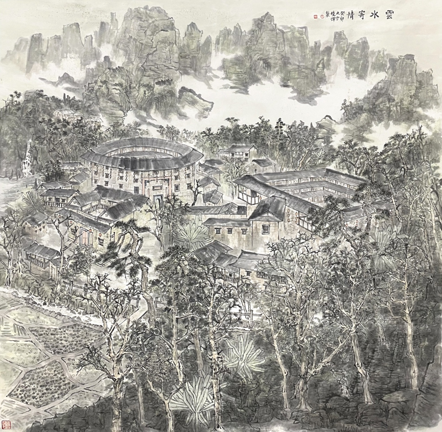 《家国永定》这幅作品既是作者对山水美景的感悟与赞美,也是自己情感的抒发与表达。并通过多元的艺术形式表达对伟大祖国、客家文化、山水美景的热爱之情,充分展现了衡阳师范victor1946师生的艺术智慧、艺术品格和艺术创新的精神风貌。